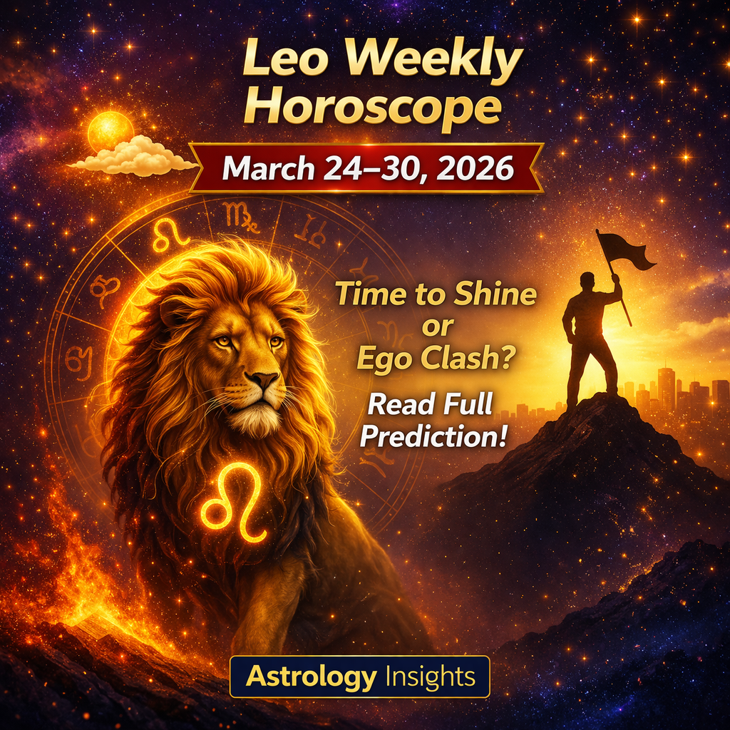 सिंह राशि साप्ताहिक राशिफल 24 मार्च 2026 लेकिन एक बात का ध्यान रखना जरूरी है—अहंकार (Ego) इस सप्ताह आपकी सबसे बड़ी कमजोरी बन सकता है। अगर आपने इसे कंट्रोल में रखा, तो सफलता आपके कदम चूमेगी।
